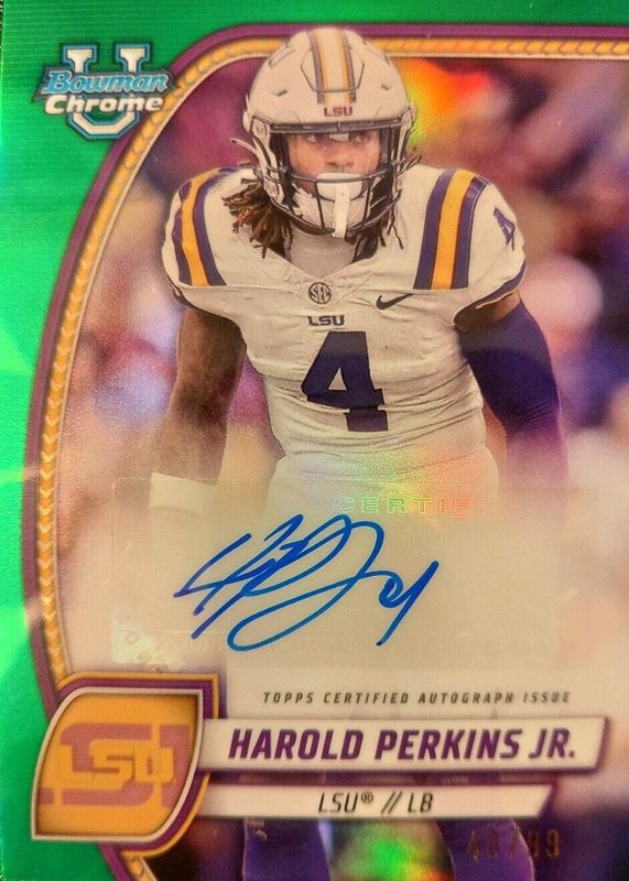 Harold Perkins Jr. Auto #11/99 Green 2024 Bowman Chrome U PA-HPE LSU Tigers