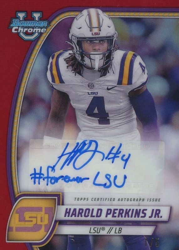 Harold Perkins Jr. 2024 Bowman Chrome University #PA-HPE Prospect Auto - Red Refractor /5 RAW Price Guide