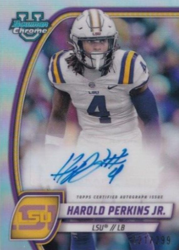 2024 Bowman Chrome U Football Auto Refractor Harold Perkins Jr LSU Tigers #/299