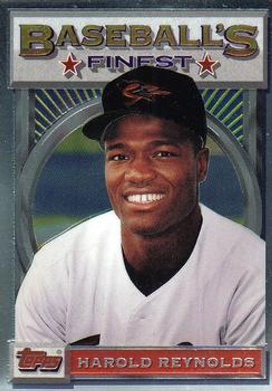 The Harold Reynolds 1993 Topps Finest #50 Base card is 1 of 2 Harold Reynolds' card variations in the 1993 Topps Finest set being tracked by Sports Card Investor, including Refractor.