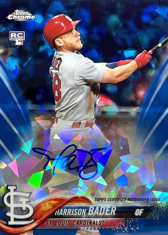 Harrison Bader's Baseball cards are available in at least 40 sets. Harrison Bader's biggest 7-day price movers are 2018 Topps Chrome Sapphire Edition #AC-HB Rookie Autographs, 2018 Topps Chrome #40 Refractor, and 2018 Topps Silver Pack #31 1983 Chrome Promo.