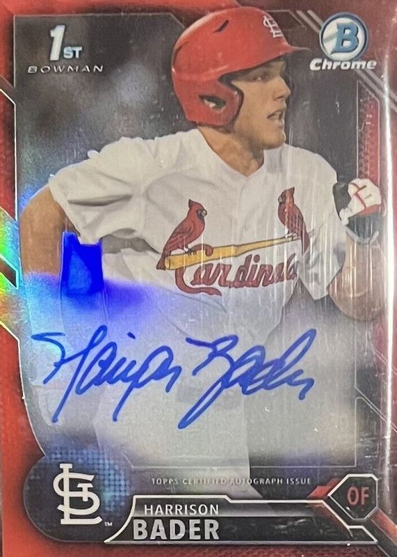 Auctions Ending Soon for Harrison Bader 2016 Bowman Chrome #CPA-HB Prospect Auto - Red Refractor /5 (1st) RAW