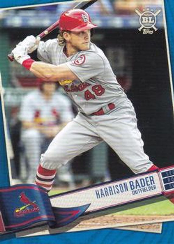 The Harrison Bader 2019 Topps Big League #301 Blue card is 1 of 10 Harrison Bader's card variations in the 2019 Topps Big League set being tracked by Sports Card Investor, including Base, Gold, Rainbow Foil /100, Artist Rendition /50, and Red Foil /1.