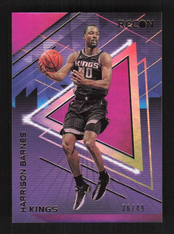 The Harrison Barnes 2020 Recon #80 Purple /49 card is 1 of 12 Harrison Barnes' card variations in the 2020 Recon set being tracked by Sports Card Investor, including Base, Bronze, Holo, Pink, and Spiral.
