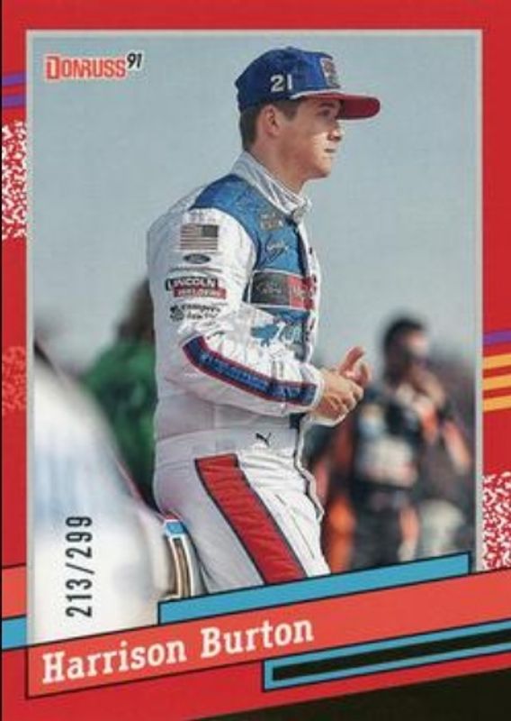 The Harrison Burton 2024 Donruss NASCAR #140 Red /299 card is 1 of 96 Harrison Burton's card variations in the 2024 Donruss NASCAR set being tracked by Sports Card Investor, including #140 Base, #67 Base, #140 Optic, #67 Optic, and #67 Optic Black Pandora.