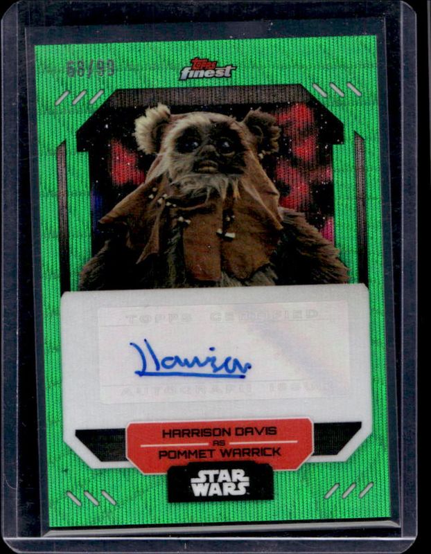 The Harrison Davis 2023 Topps Finest #FA-HD Finest Autographs Green Wave /99 card is 1 of 15 Harrison Davis' card variations in the 2023 Topps Finest set being tracked by Sports Card Investor, including Finest Autographs, Finest Autographs Aqua /199, Finest Autographs Green /99, Finest Autographs Purple /75, and Finest Autographs Purple Wave /75.