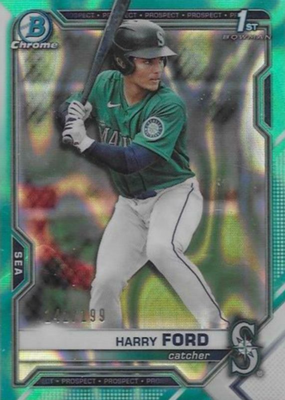 2021 Bowman Draft Harry Ford 1st Chrome Aqua Lava Refractor/199 #BDC-1 Mariners