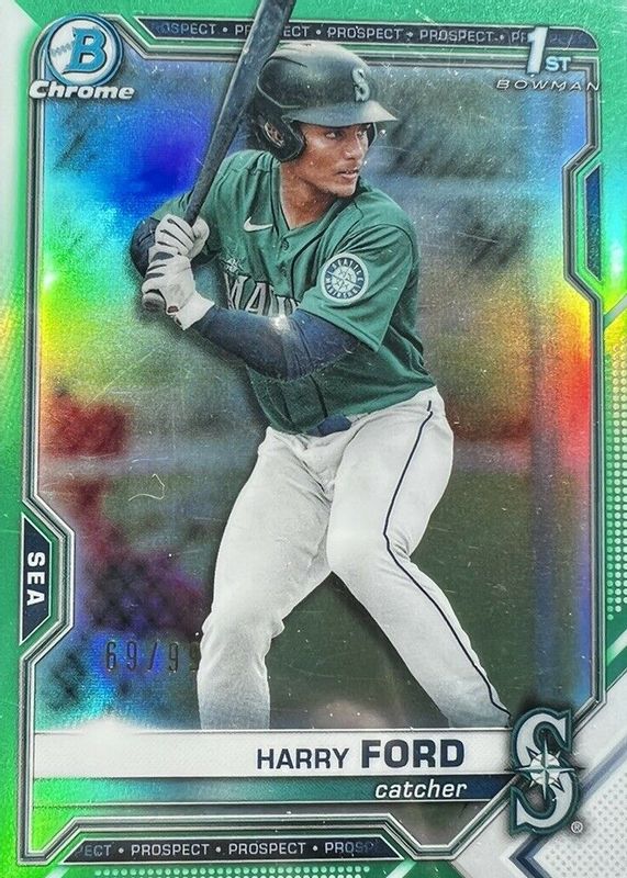 Harry Ford 2021 Bowman Draft Chrome 1st Green Refractor /99 Mariners BDC-1