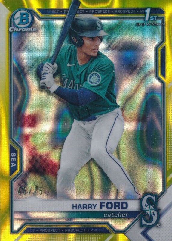 2021 Bowman Chrome Draft Harry Ford Yellow Lava Refractor /75 #BDC-1 Mariners