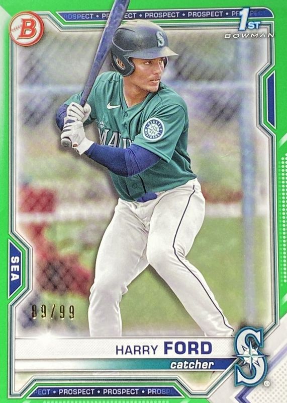 2021 Bowman Draft Harry Ford 1st Bowman Green Parallel /99 Mariners
