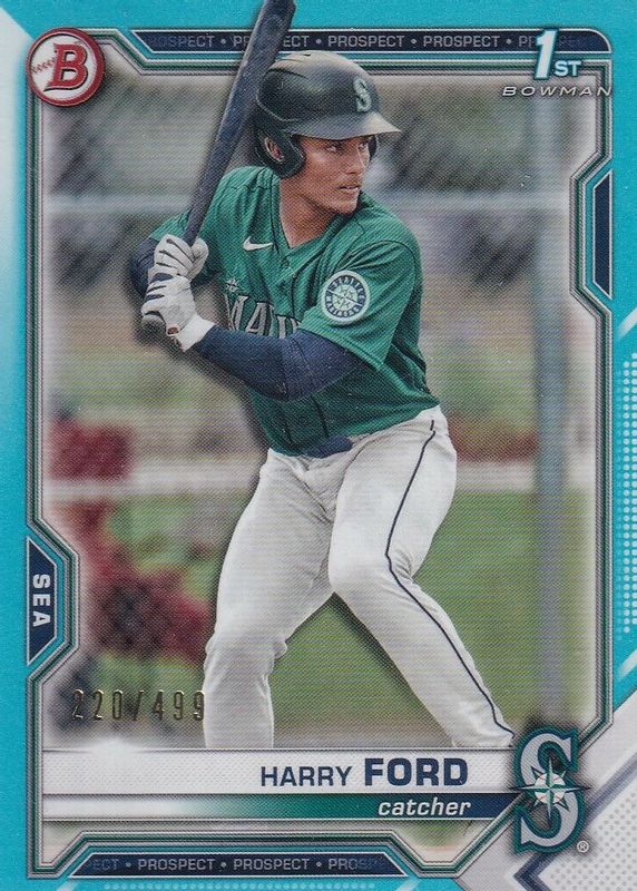 HARRY FORD 2021 BOWMAN DRAFT 1ST SKY BLUE BORDER MARINERS /499 Q4920