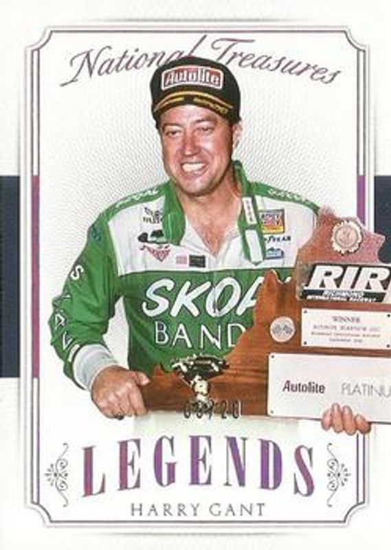 The Harry Gant 2016 National Treasures NASCAR #36 Century Silver /20 card is 1 of 18 Harry Gant's card variations in the 2016 National Treasures NASCAR set being tracked by Sports Card Investor, including Base /25, Century Gold /15, Century Black /5, Century Blue /1, and Printing Plates Black /1.