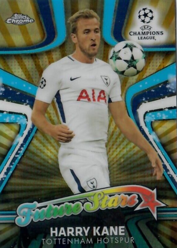 The Harry Kane 2017 Topps Chrome UEFA Champions League #FS-HK Future Stars - Gold Refractor /50 card in Raw condition has not changed in price in the last 30 days and was last sold for $79.88 .