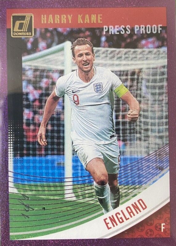 This card is 1 of 21 Harry Kane's card variations in the 2018 Donruss set being tracked by Sports Card Investor, including Base, Press Proof Green, Press Proof Red, Press Proof Silver, and Press Proof Die-Cut /100.