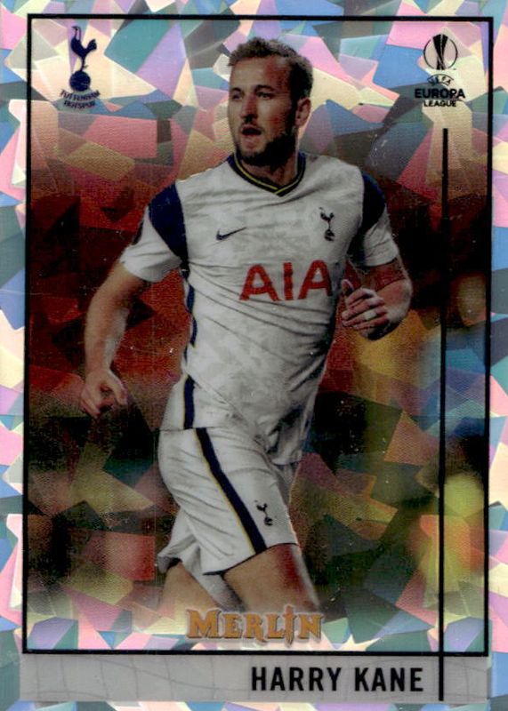 This card is 1 of 17 Harry Kane's card variations in the 2020 Topps Merlin Chrome UEFA Champions League set being tracked by Sports Card Investor, including Aqua Prism Refractor, Refractor, Purple Refractor /299, Aqua Refractor /199, and Speckle Refractor /150.