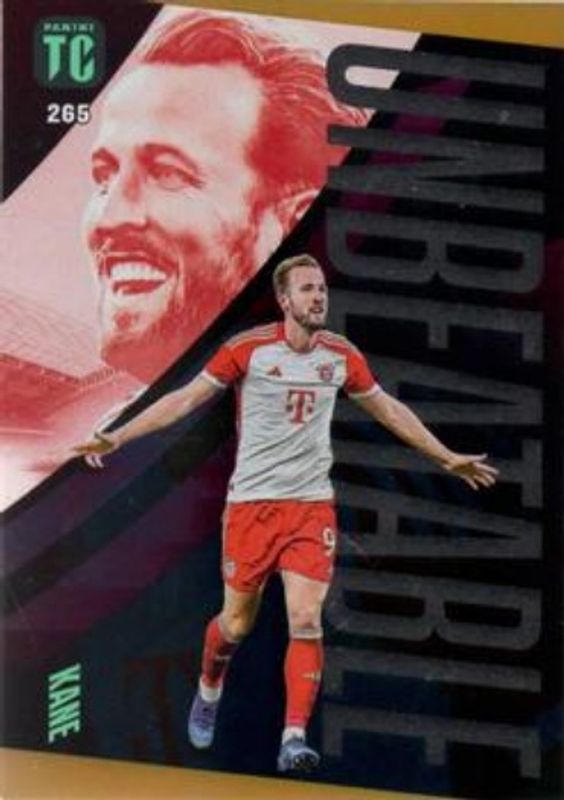 The Harry Kane 2024 Panini Top Class #265 Unbeatable Bright Gold card is 1 of 11 Harry Kane's card variations in the 2024 Panini Top Class set being tracked by Sports Card Investor, including #124 Base, #173 Base, #222 Base, #243 Base, and #265 Base.