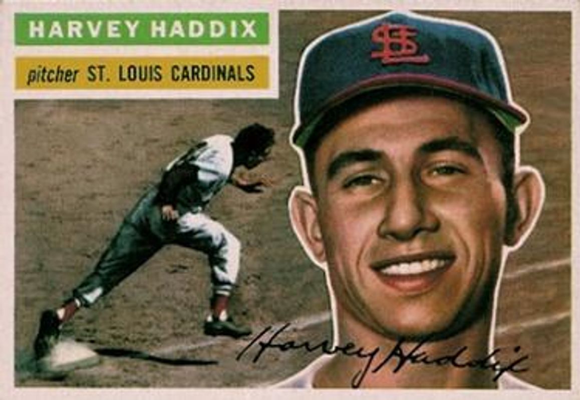 The Harvey Haddix 1956 Topps #77b Base card is 1 of 2 Harvey Haddix's card variations in the 1956 Topps set being tracked by Sports Card Investor, including Base.