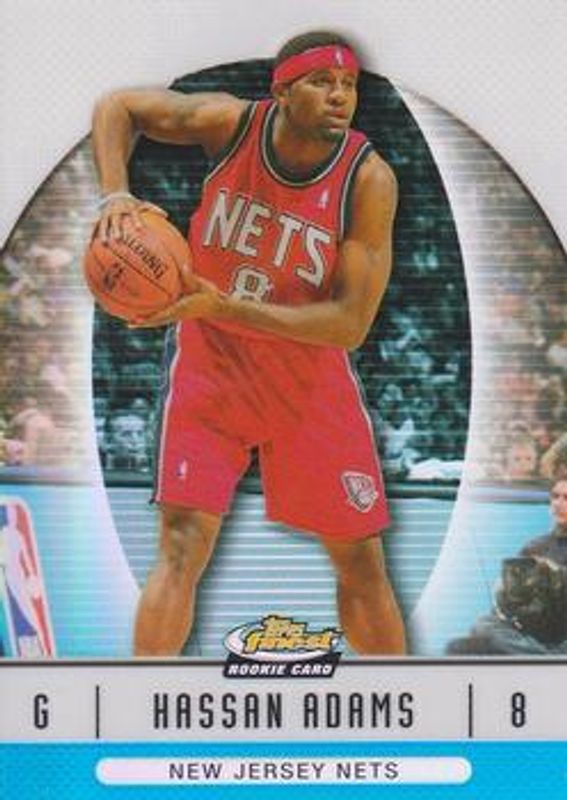 The Hassan Adams 2006 Topps Finest #87 Blue Refractor /299 Rookie card is 1 of 20 Hassan Adams' card variations in the 2006 Topps Finest set being tracked by Sports Card Investor, including Base /539, X-Fractor /25, Printing Plates Black /1, Printing Plates Cyan /1, and Printing Plates Magenta /1.