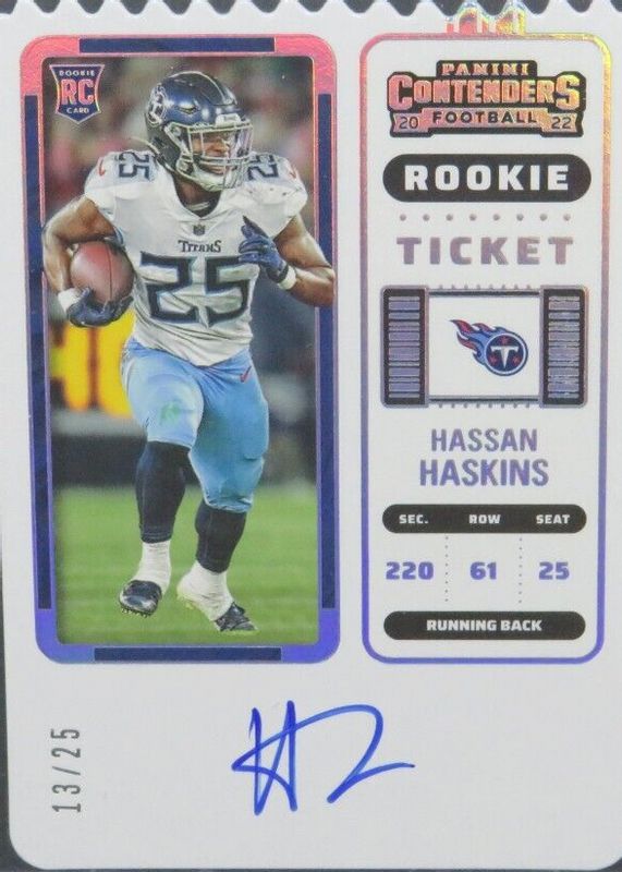 2022 PANINI CONTENDERS HASSAN HASKINS ROOKIE RC TICKET STUB AUTO /25 TITANS BS8