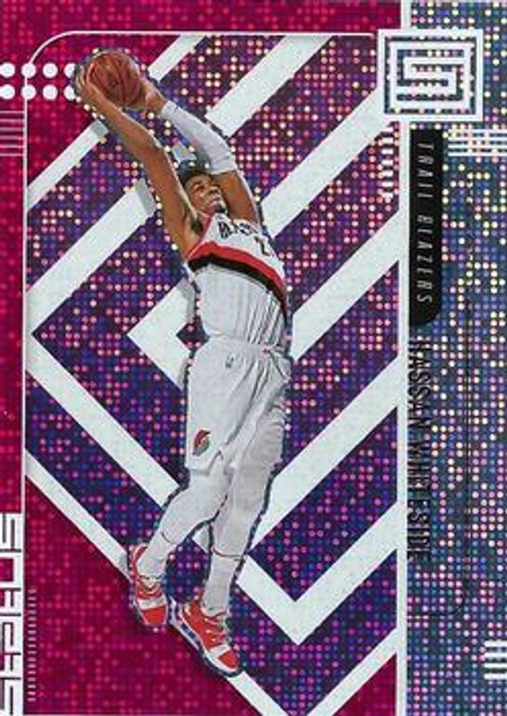 The Hassan Whiteside 2019 Status #31 Red card is 1 of 7 Hassan Whiteside's card variations in the 2019 Status set being tracked by Sports Card Investor, including Base, Blue, White Diamonds /125, Green Escher Squares /49, and Gold Fireworks /10.
