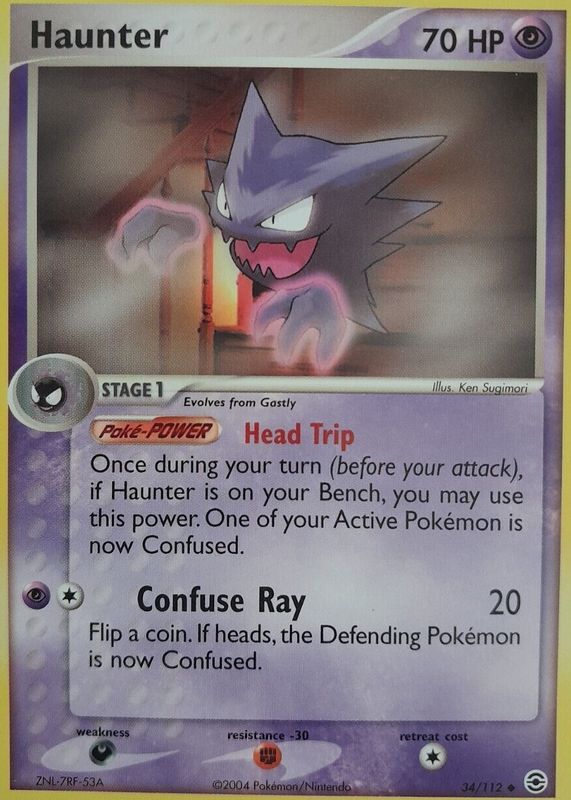 The Haunter 2004 EX: FireRed & LeafGreen #034/112 Base card in Raw TCG (Near Mint) condition has moved up $6.44 (+156%) in the last 30 days and was last sold for $10.58 .