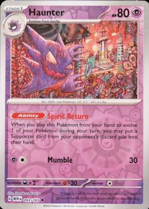 Haunter 2023 Scarlet & Violet: 151 #093/165 Reverse Holo RAW TCG (NEAR MINT) Price Guide