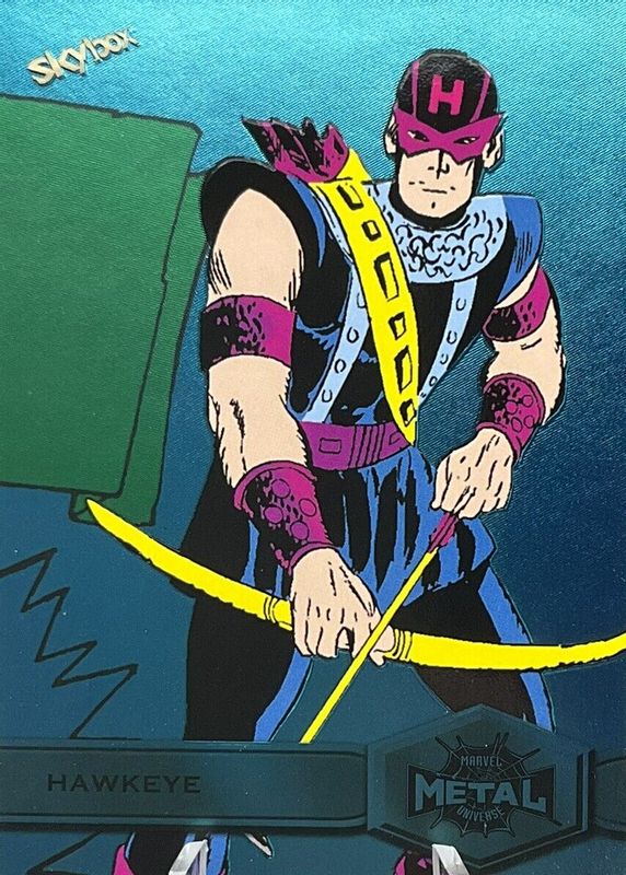 This card is 1 of 19 Hawkeye's card variations in the 2021 Skybox Marvel Metal Universe Spider-Man set being tracked by Sports Card Investor, including Grandiose, Grandiose (High Series), Light FX Gold, Light FX Gold (High Series), and Light FX Yellow.