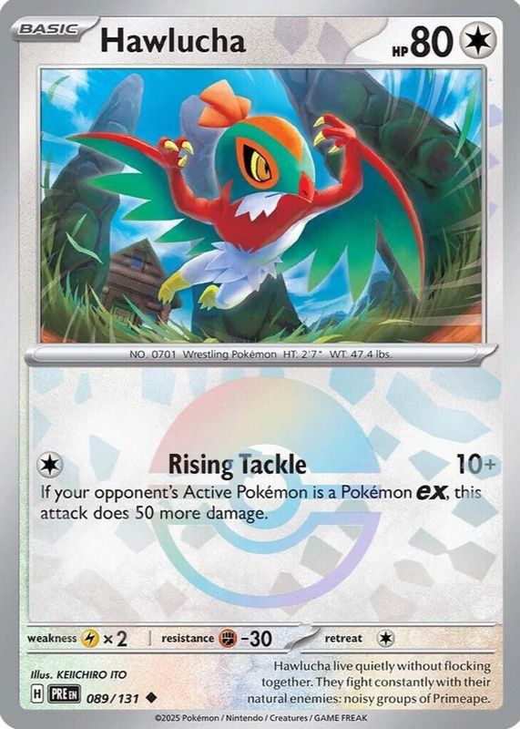 Hawlucha 2025 Scarlet & Violet: Prismatic Evolutions #089/131 Poke Ball Reverse Holo RAW TCG (NEAR MINT) Price Guide
