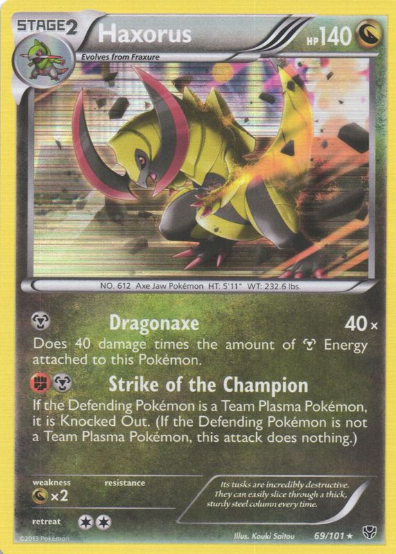 The Haxorus 2013 Black & White: Plasma Blast #069/101 Holo card in Raw TCG (Near Mint) condition has moved up $0.50 (+25.1%) in the last 30 days and was last sold for $2.49 .