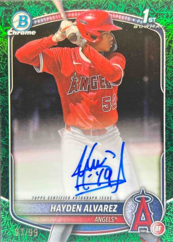2025 Bowman Chrome Hayden Alvarez 1st Green Grass Auto #/99 Los Angeles Angels