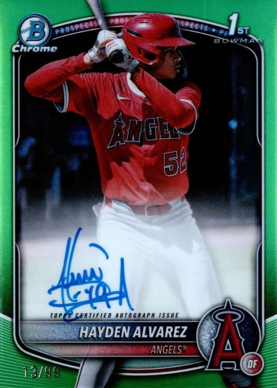 Topps Bowman 2025 Hayden Alvarez Auto Green Refractor /99 Chrome Prospect 1st