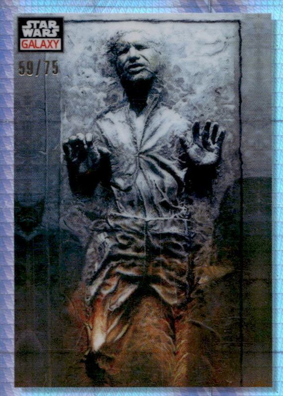The He's All Yours, Bounty Hunter 2023 Topps Chrome Star Wars Galaxy #73 Prism Refractor /75 card in Raw condition has not changed in price in the last 30 days and was last sold for $25.00 .