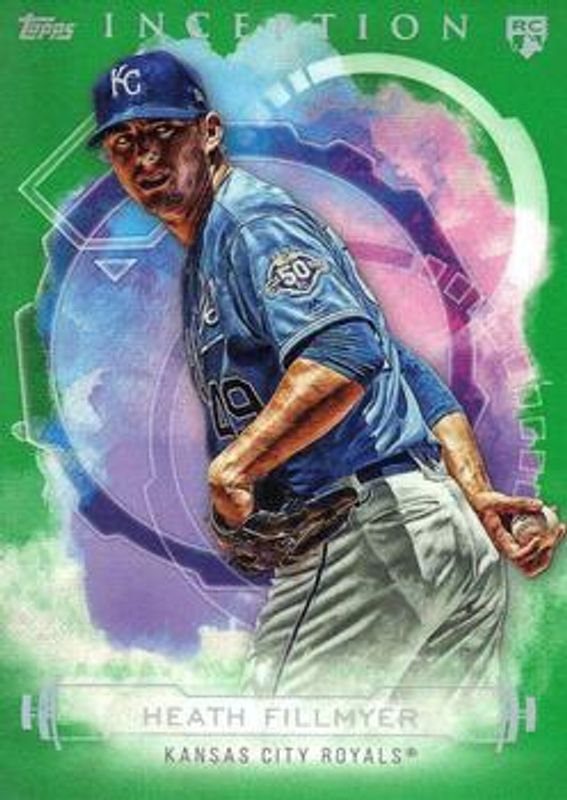 The Heath Fillmyer 2019 Topps Inception #54 Green Rookie card is 1 of 24 Heath Fillmyer's card variations in the 2019 Topps Inception set being tracked by Sports Card Investor, including Base, Purple /150, Magenta /99, Red /75, and Orange /50.