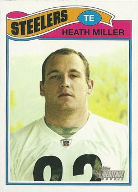 The Heath Miller 2005 Topps Heritage #61a Base Rookie card is 1 of 6 Heath Miller's card variations in the 2005 Topps Heritage set being tracked by Sports Card Investor, including #61b Base, #THC17a Foil, #THC17b Foil, #ROA-HM Real One Autographs, and #THC17 Rainbow Foil /50.