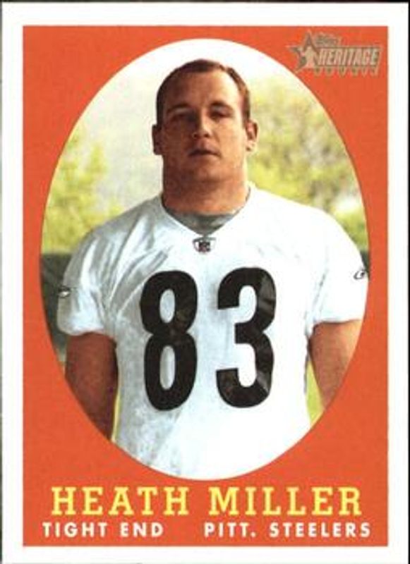 The Heath Miller 2005 Topps Heritage #61b Base Rookie card is 1 of 6 Heath Miller's card variations in the 2005 Topps Heritage set being tracked by Sports Card Investor, including #61a Base, #THC17a Foil, #THC17b Foil, #ROA-HM Real One Autographs, and #THC17 Rainbow Foil /50.