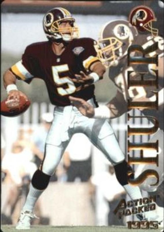 The Heath Shuler 1995 Action Packed Flagship #17 Base card is 1 of 6 Heath Shuler's card variations in the 1995 Action Packed Flagship set being tracked by Sports Card Investor, including Quick Silver, 24K Gold, Armed Forces, Armed Forces Braille, and Rocket Man.
