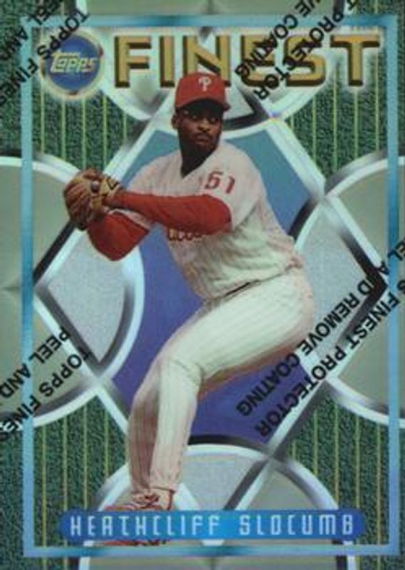 The Heathcliff Slocumb 1995 Topps Finest #264 Refractor card is 1 of 2 Heathcliff Slocumb's card variations in the 1995 Topps Finest set being tracked by Sports Card Investor, including Base.