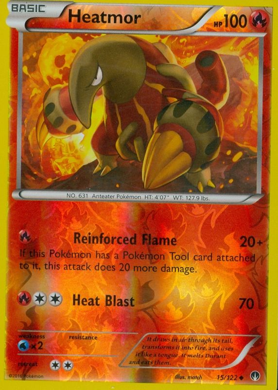 The Heatmor 2016 XY: BREAKpoint #015/122 Reverse Holo card in Raw TCG (Near Mint) condition has not changed in price in the last 30 days and was last sold for $1.25 .