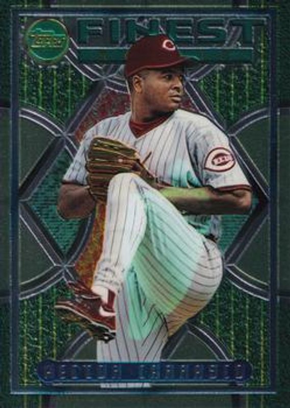 The Hector Carrasco 1995 Topps Finest #28 Base card is 1 of 2 Hector Carrasco's card variations in the 1995 Topps Finest set being tracked by Sports Card Investor, including Refractor.