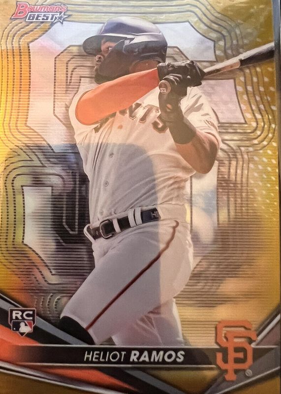 The Heliot Ramos 2022 Bowman's Best #62 Gold Refractor /50 Rookie card in Raw condition has moved up $6.49 (+430%) in the last 30 days and was last sold for $8.00 .