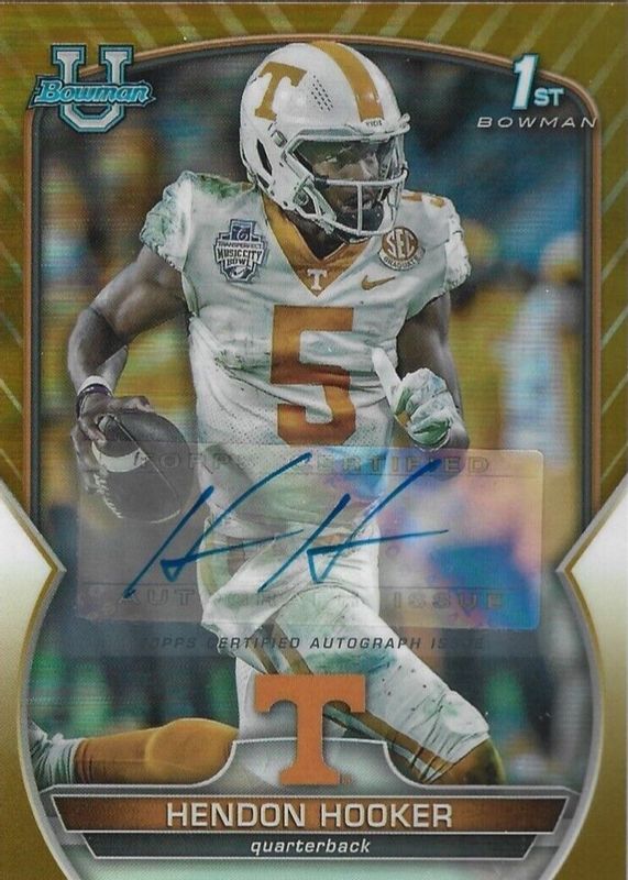 Best Prices Available For Sale of Hendon Hooker 2022 Bowman Chrome University #21 Prospect Auto - Gold Refractor /50 (1st)