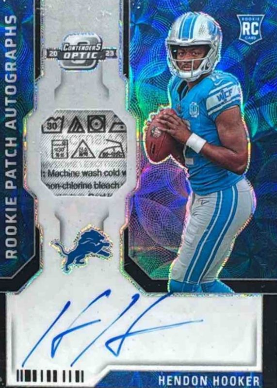 This card is 1 of 30 Hendon Hooker's card variations in the 2023 Contenders Optic set being tracked by Sports Card Investor, including Rookie of the Year Contenders Autographs - Blue (/45), Rookie Ticket Auto, Rookie Ticket Auto - Red (/125), Rookie Ticket Auto - Silver, and Rookie Ticket Auto - Teal /99.