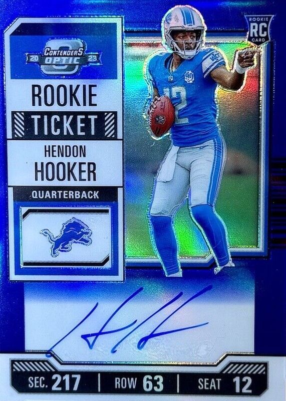 2023 Panini Contenders Optic Hendon Hooker Blue /75 Auto Rookie Ticket Lions