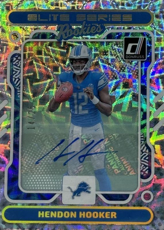 The Hendon Hooker 2023 Donruss #20 The Elite Series Rookies Autographs (/25) card in Raw condition has not changed in price in the last 30 days and was last sold for $43.00 .