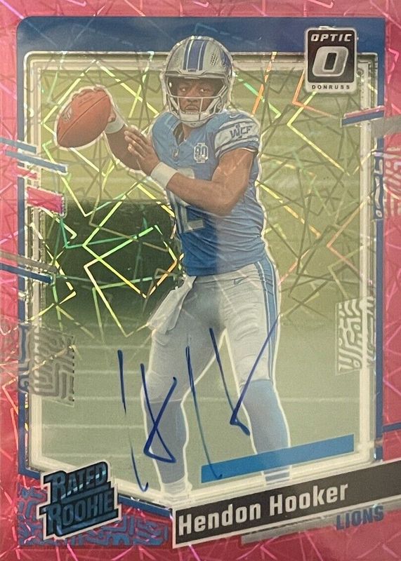 HENDON HOOKER 2023 Donruss Optic Rated Rookie PINK VELOCITY On Card Auto /50