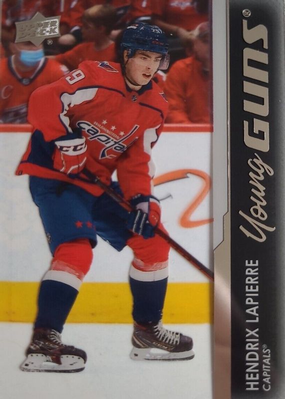 This card is 1 of 10 Hendrix Lapierre's card variations in the 2021 Upper Deck set being tracked by Sports Card Investor, including Young Guns Base, Young Guns Canvas, Young Guns - Clear Cut Exclusives, Young Guns - French, and Young Guns - Jumbo.