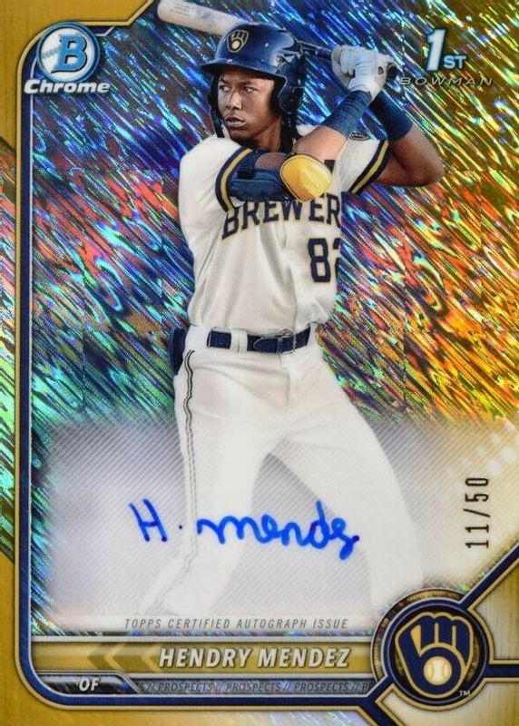 2022 Bowman Chrome Hendry Mendez 1st Auto Milwaukee Brewers /50 Gold Shimmer