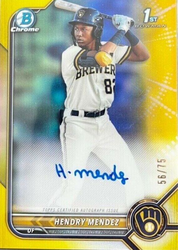 2022 Bowman Chrome Hendry Mendez 1st RC Yellow Refractor Auto 39/75 Brewers