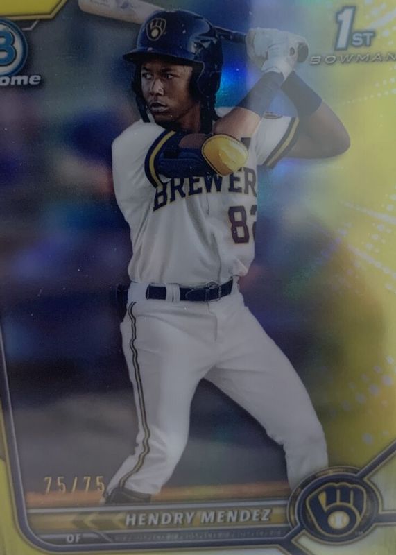 2022 Bowman Hendry Mendez yellow chrome refractor rookie card #’d to 75 Brewers!