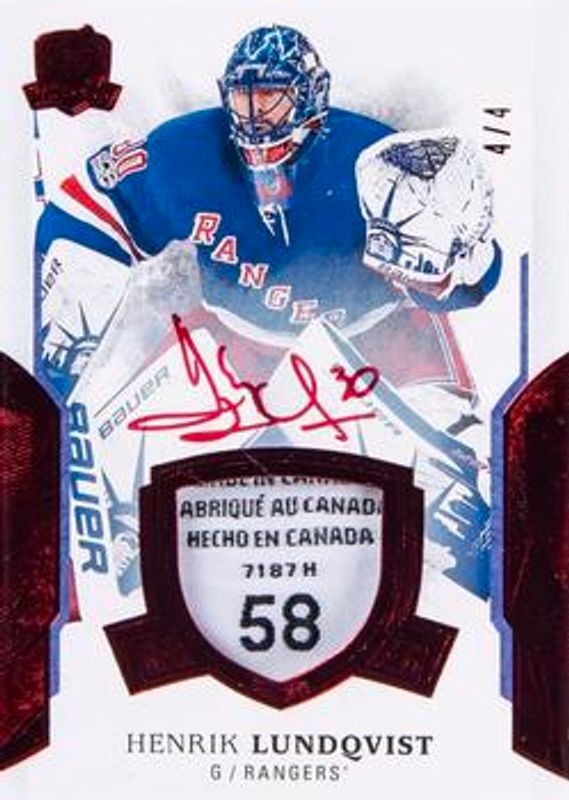 Henrik Lundqvist 2017 Upper Deck The Cup #56 Red Foil Tag /8 RAW Price Guide